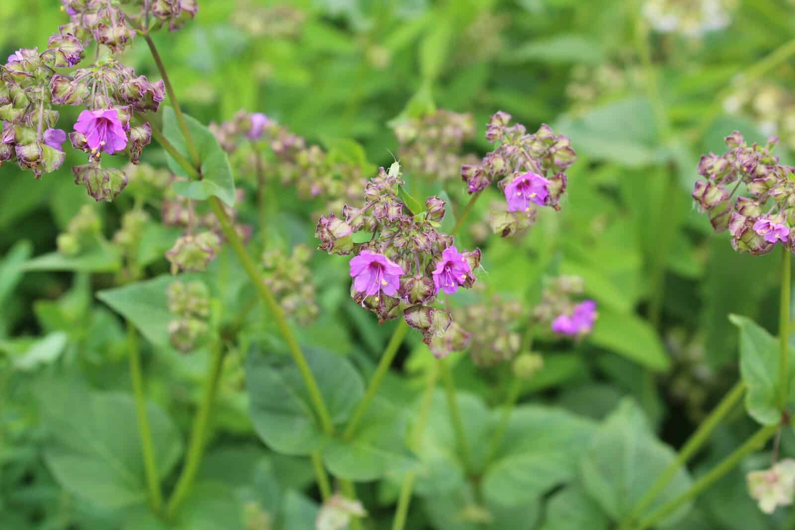 Wild Four-o’Clock Mirabilis nyctaginea is a North American wildflower with tubular blooms that open in late afternoon and evening. It reaches about 1 to 3 ft tall and spreads readily by seed, so it suits naturalized borders and sunny dry sites where self seeding is acceptable.